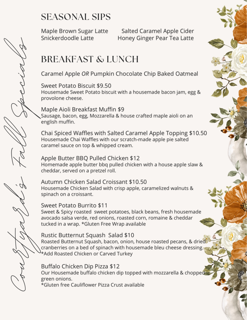 Courtyard Cafe makes everything IN-HOUSE and FROM SCRATCH with fresh local ingredients!